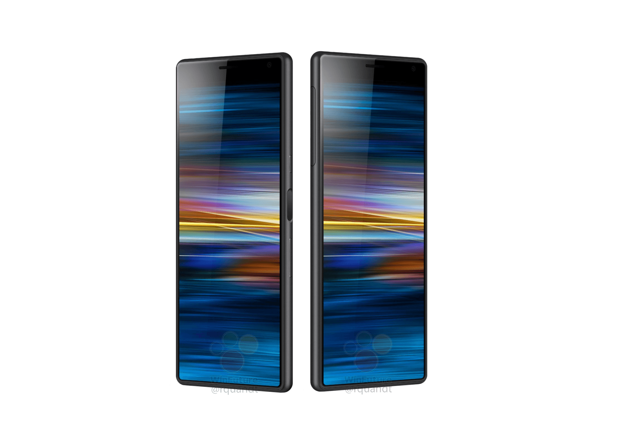 Unser Leaker der Nation, Roland Quandt, hat nun ein weiteres Sony-Handy in diesem "Cinemascope-Kinoformat" aufgetrieben und das gleich in mehreren hochauflösenden Bildern mit insgesamt vier Farbvarianten (siehe unten in schwarz, blau, grau sowie pink-gold). Auch hier sehen wir ein sehr länglich wirkendes Sony-Design mit seitlich im Einschalter integrierten Fingerabdrucksensor und mittig zentrierter horizontaler Dual-Cam an der Rückseite.