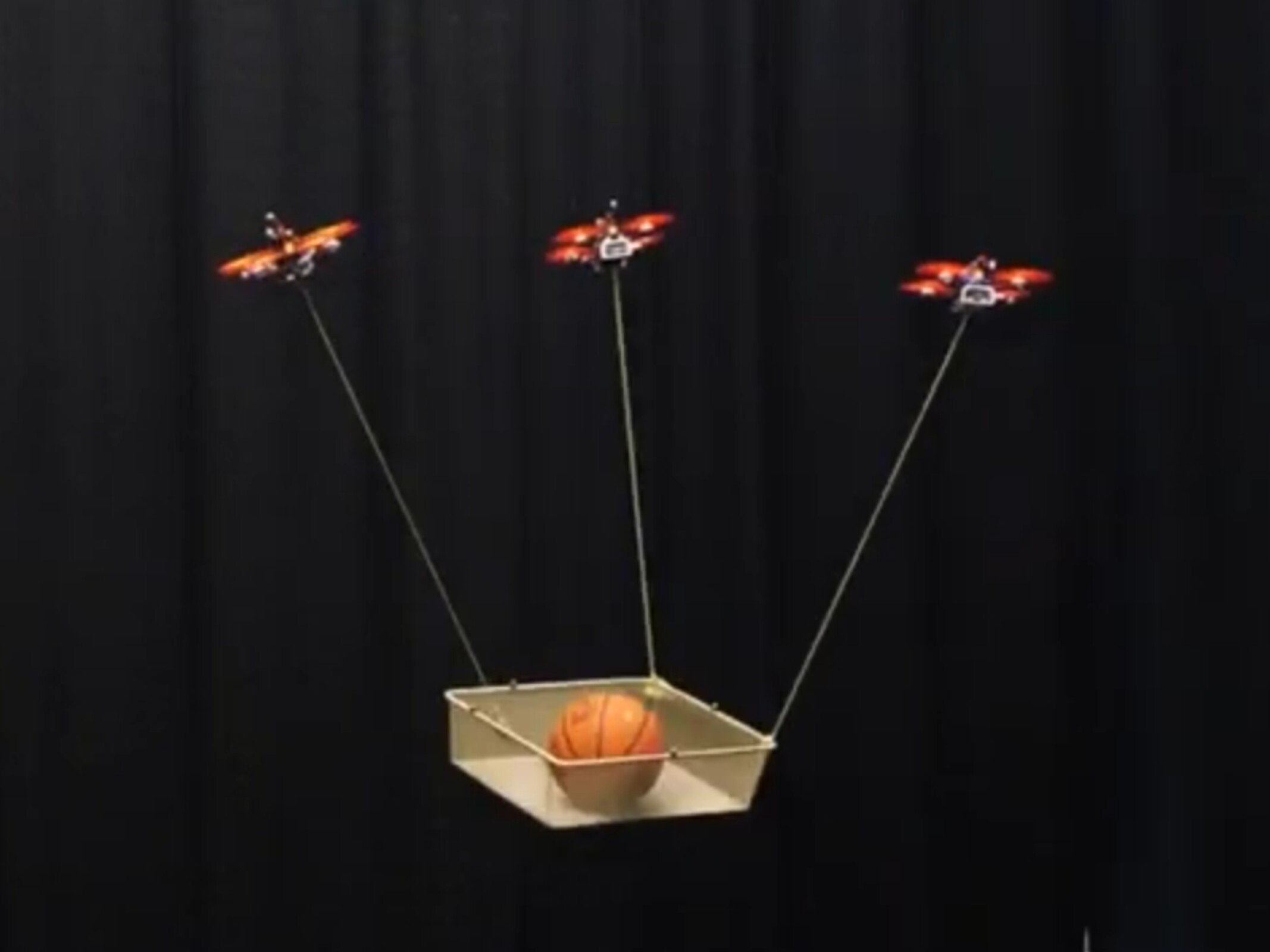 In einem aktuellen Video der TU Delft demonstrieren die Forscher um den Robotikexperten Sihao Sun den Ansatz: Drei bis vier selbst entwickelte Quadrokopter tragen eine große Last – in diesem Fall einen leeren Korb, teils mit einem Basketball als Transportgut – durch einen Hindernisparcours. Selbst simulierte Sturmböen mit über fünf Metern pro Sekunde bringen das System nicht aus dem Gleichgewicht.