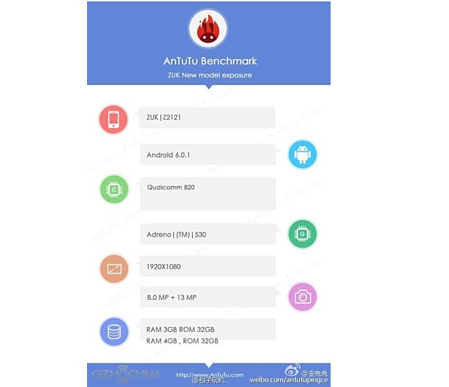 Das Display soll FHD Auflösung mit 1.920 x 1.080 px aufweisen, die Kameras sind mit 13 MP und 8 MP eingetragen. Android 6.0.1 ist vorinstalliert.