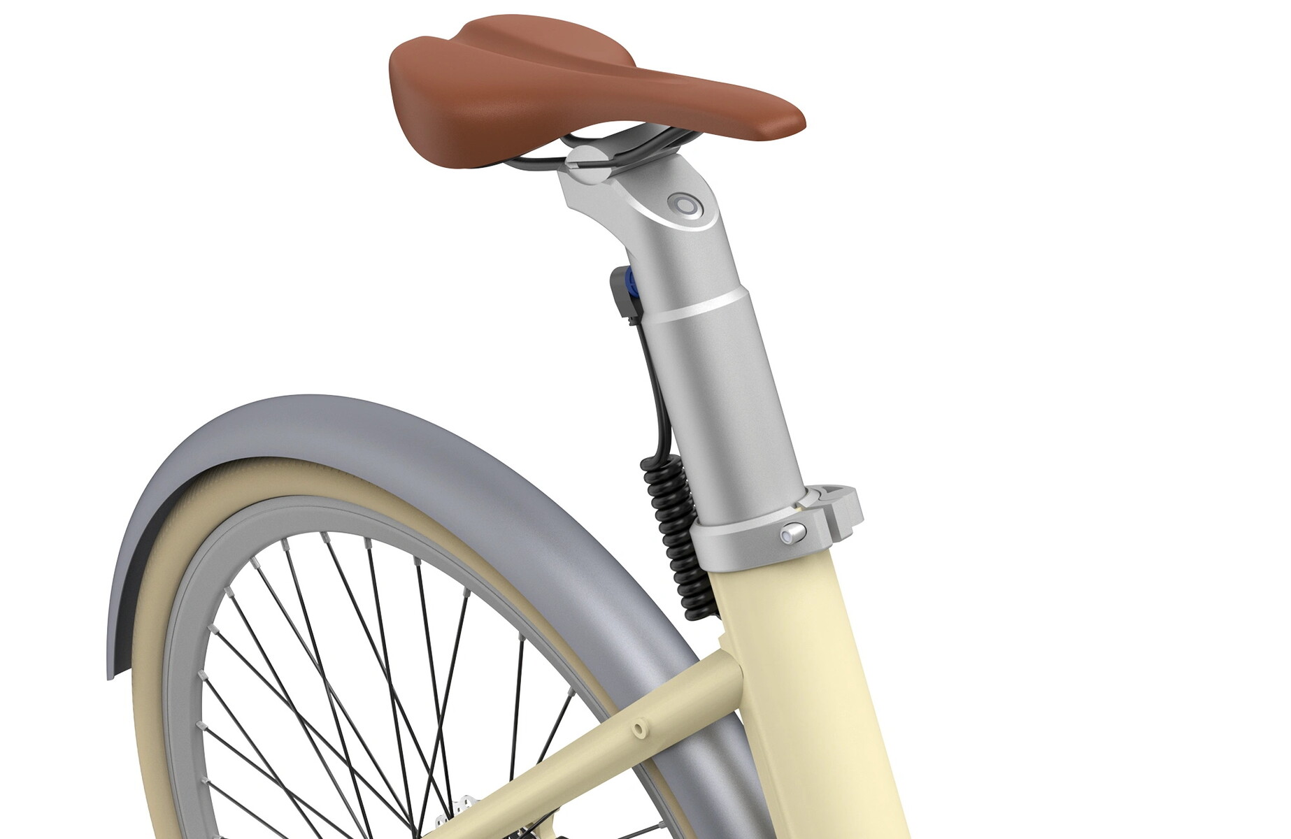 Schaut man sich die Bilder an, so übernimmt das Ado Air 28 außerdem die Akku-Sattelstange, bei der der Akku nicht im Rahmen sitzt, sondern direkt in die Sattelstange integriert ist. Das Konzept haben wir im Ado Air 20 durchaus divers mit uns selbst diskutiert. Einerseits ist es sicher praktisch im Rahmen keinen Angriffspunkt für Regen, Schmutz oder Schnee nach dem Entfernen des Akkus zu lassen. Andererseits kann die Implementierung als besonders dicke Sattelstange auch etwas unpraktisch sein. Denn eine größere Last wie einen Kindersitz oder Ähnliches möchte wohl niemand gerne an ein sensibles Bauteil wie einen Akku anschrauben.