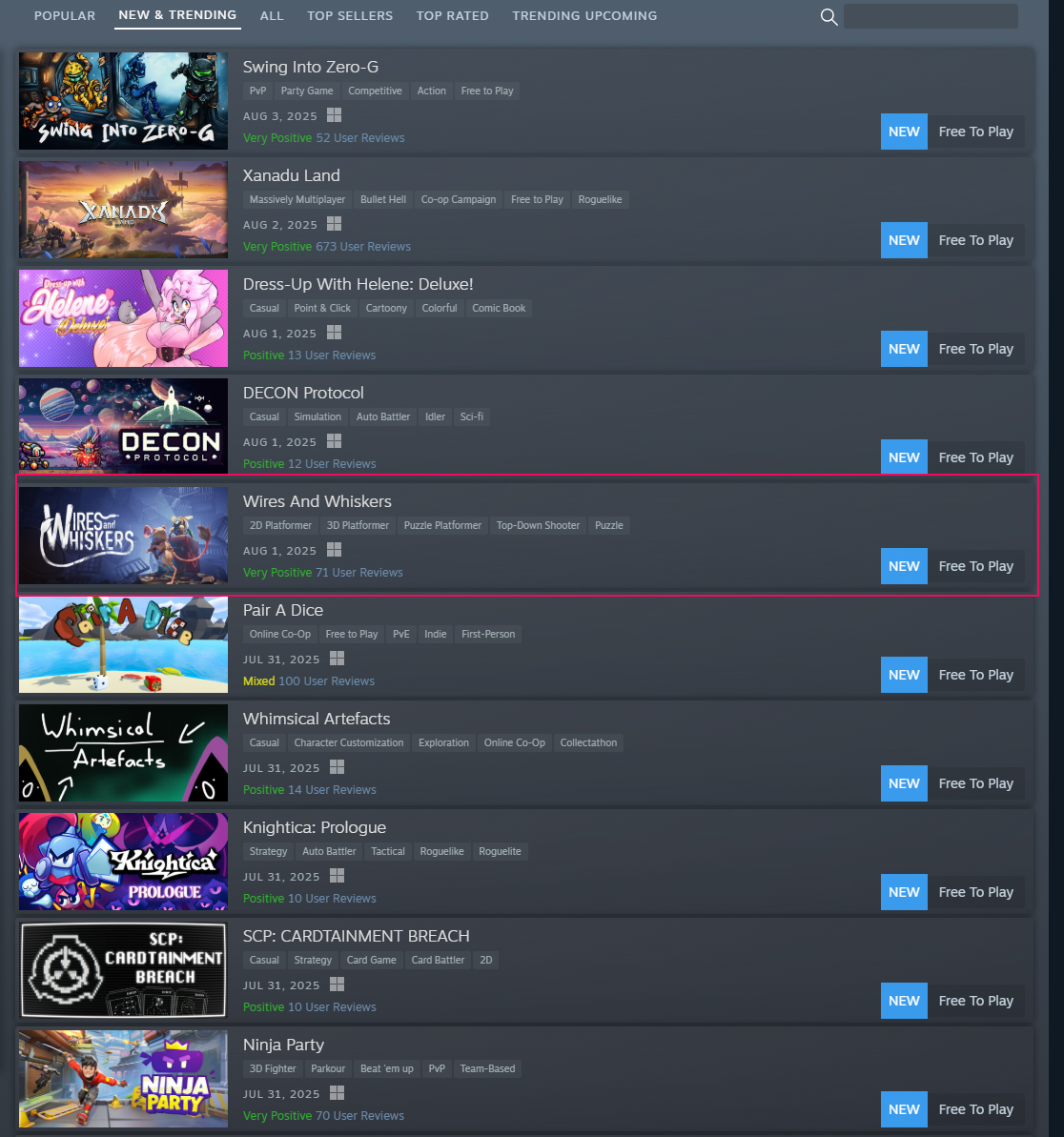 Neben den großen Releases tauchen auf Steam immer mal wieder auch kostenlose Spiele auf – und Wires And Whiskers gehört zu genau diesen kleinen Überraschungen. Doch im Gegensatz zu vielen anderen Freebies hat sich dieses Spiel kurz nach dem Release direkt in die Trendcharts katapultiert.