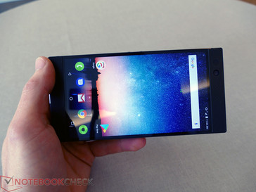 Das Razer Phone wird mit einem 5,72 Zoll großen Display im Format 16:9 ausgestattet sein. Damit folgt man hier nicht unbedingt dem aktuellen Trend hin zu extremen Breitbild-Formaten. Dies könnte durchaus auch durch das Designkonzept mit den vergleichsweise breiten Rändern am oberen und unteren Rand begründet sein, die Frontcam und jeweils Lautsprecher aufnehmen. Kombiniert mit einem Breitbilddisplay wäre das Phone so extrem in die Länge gewachsen.