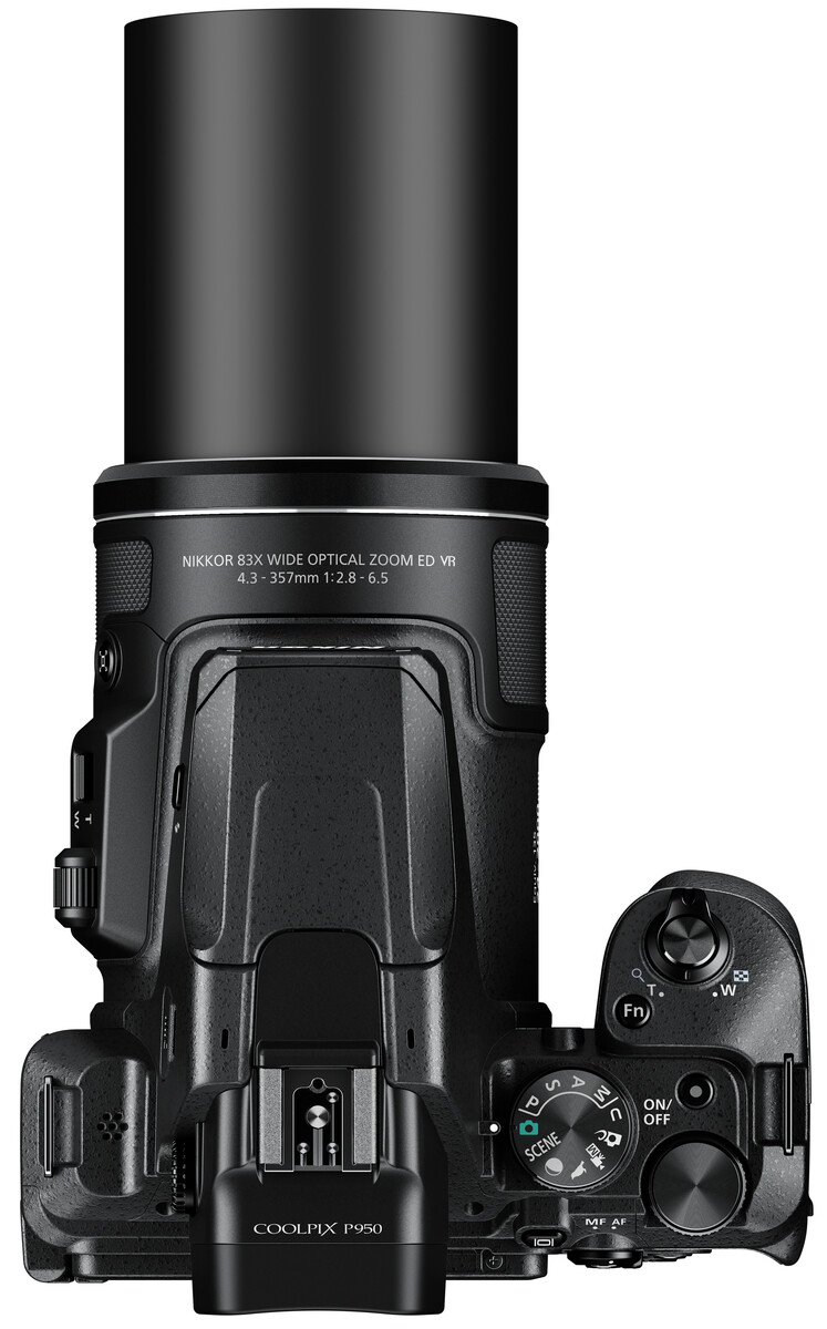 Die Nikon Coolpix P950 übernimmt viele technische Details und Ausstattungselemente von der Vorgängerin Coolpix P900. Neu kommen bei der P950 jetzt die Möglichkeit zur Aufnahme von 4K UHD/30p-Videos, eine RAW-Unterstützung (NRW), ein Zubehörschuh für Accessoires wie ein optionales Blitzgerät oder ein externes Mikrofon, sowie ein größerer (1 cm) und höher auflösender OLED-Sucher mit 2,36 Millionen Pixeln dazu.