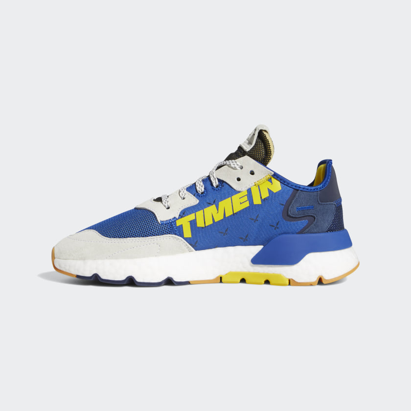 Über Geschmack lässt sich bekanntlich nicht streiten, aber die Schuhe basieren auf den Nite Joggers von Adidas – weder die beliebtesten noch die hübschesten Schuhe der Marke. Richtig schlimm wird es auf der Innenseite, auf der über beide Schuhe verteilt groß die Worte "TIME IN NINJA" zu lesen sind. Warum TIME IN? Na, das lassen wir mal den offiziellen Werbetext erklären: