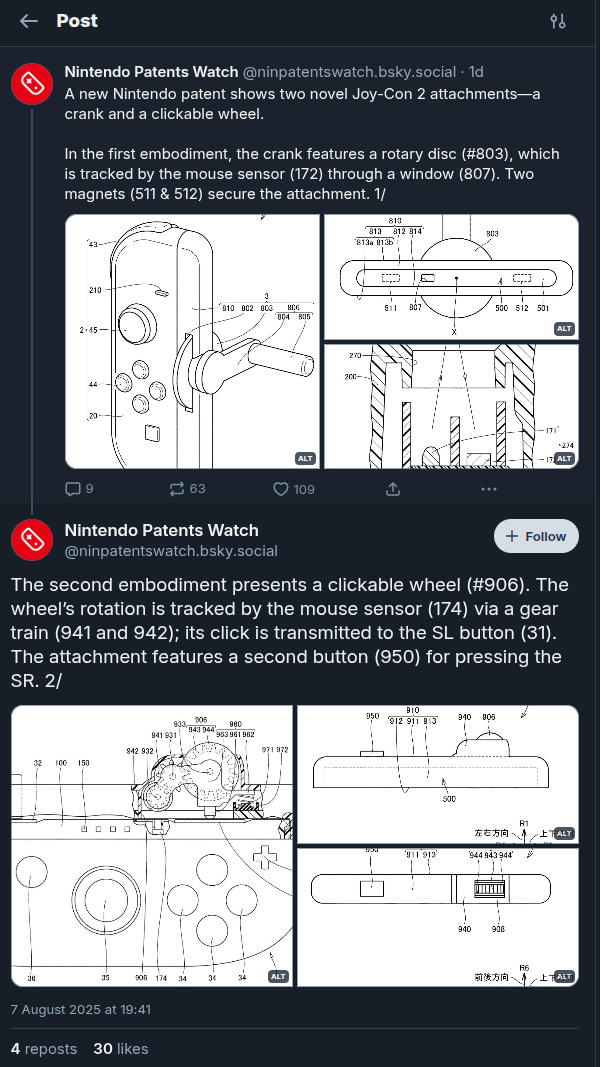 Wie von Nintendo Patents Watch (via Bluesky) entdeckt, hat Nintendo zwei neue Patente eingereicht, die möglicherweise irgendwann eine Kurbel und ein klickbares Rad für den Switch-2-Joy-Con hinzufügen könnten.