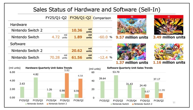Auch Donkey Kong Bananza ist mit 3,49 Millionen Einheiten ein voller Erfolg. Abgesehen von diesen beiden Titeln hatte Nintendo bis Ende September kaum neue Blockbuster im Sortiment, die Bibliothek für die Nintendo Switch 2 setzt sich bisher vor allem aus älteren Spielen zusammen, die teilweise zumindest ein Update oder ein kostenpflichtiges Upgrade für die neue Konsole erhalten haben.