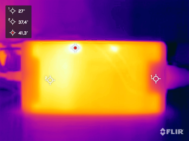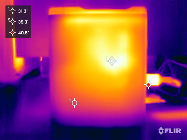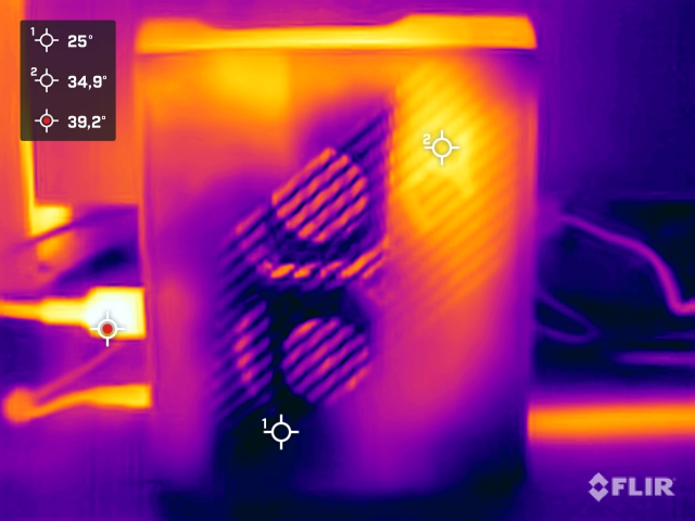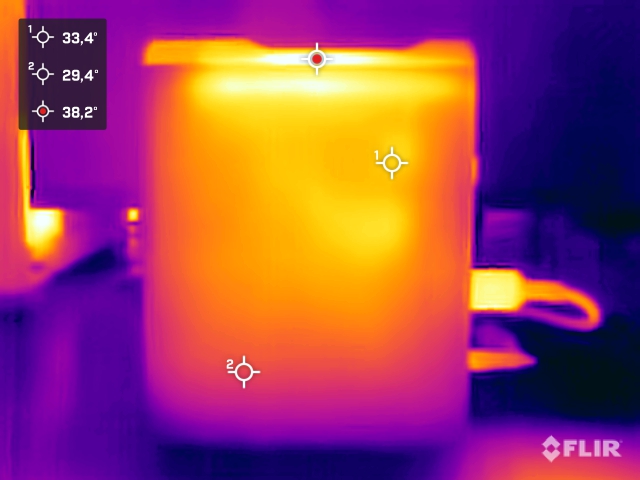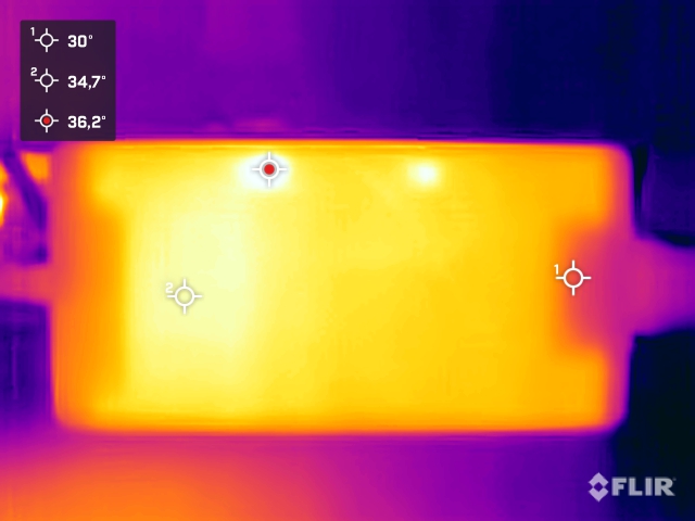 (+) Auf der Unterseite messen wir eine maximalen Wert von 34.5 °C (im Vergleich zum Durchschnitt von 36.4 °C).