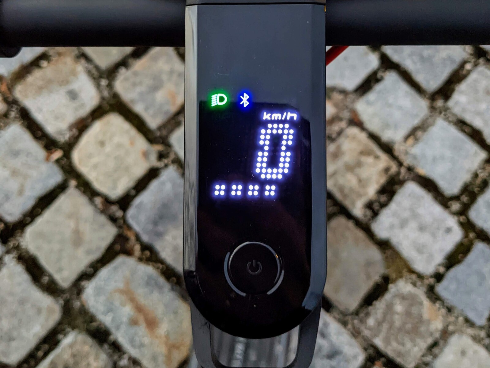 Der Roller hat unterhalb des Displays nur einen Knopf. Darüber wird der Scooter an- und ausgeschaltet, das Fahrprogramm gewechselt, das Licht an- bzw. ausgeschaltet oder die Wegfahrsperre aktiviert. Für alle anderen Einstellungen muss das Smartphone herhalten. Leider ist das Display etwas kratzempfindlich.