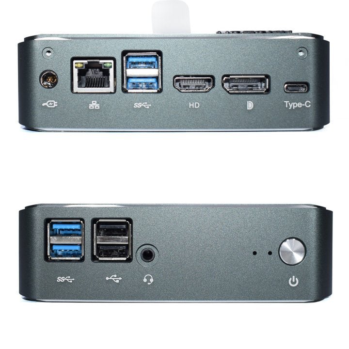 Bei den externen Anschlüssen bietet der Nofflink M500 viele Möglichkeiten für externe Geräte. Insgesamt zählen wir sechs USB-A-Schnittstellen und einmal USB Type-C. Damit bietet der M500 genau so viel wie der Morefine S500+. Bei zweien beschränkt sich die Übertragungsgeschwindigkeit jedoch auf USB 2.0. Bei der Bildausgabe kann man zwischen HDMI, DisplayPort oder USB-TypC wählen. Damit lassen sich insgesamt bis zu drei Displays gleichzeitig befeuern. Einen SD-Kartenleser vermissen wir allerdings.
