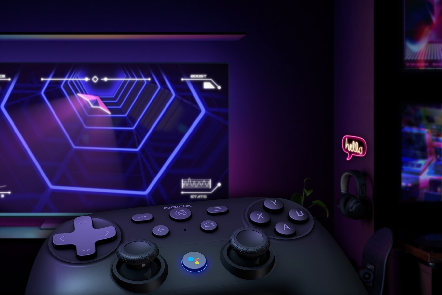 Neben den üblichen Buttons, inklusive Trigger, Steuerkreuz und A/B/X/Y, besitzt der Controller auch einen Home-Button sowie Zurück- und Smart-Home-Buttons, die vor allem für Smart TVs und Android-Geräte praktisch sind. Dasselbe gilt für den dedizierten Button zum Starten des Google Assistant, über den Spiele gesucht oder Systemfunktionen direkt per Sprachbefehl angesteuert werden können. Der Nokia Game Controller 5000 besitzt ein Sechs-Achsen-Gyroskop für eine Bewegungssteuerung und Vibrations-Motoren für haptisches Feedback.