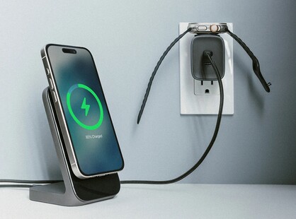 Die größte Besonderheit dieses Ladegeräts ist aber der Ladepuck für die Apple Watch, der an der Oberseite zu finden ist. Dieser hält eine Apple Watch magnetisch und lädt diese, ganz ohne die Notwendigkeit eines zusätzlichen Kabels. Das Ladegerät unterstützt die Schnellladung der Apple Watch Series 7 sowie neuerer Modelle, ist grundsätzlich aber auch mit älteren Smartwatches von Apple kompatibel. Wichtig: Mit Armbändern wie dem Solo Loop, die nicht geöffnet werden können, kann dieses Ladegerät nicht verwendet werden.