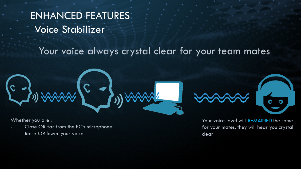 Eine gute Rauschunterdrückung ist integraler Bestandteil des Designs eines Headsets. Anders als andere Softwareerweiterungen zur Optimierung des Audiosignals, wie Dolby Digital oder Creative SoundBlaster Cinema, bietet Nahimic erweiterte Funktionen wie die Isolierung und Betonung von Stimmen, Feinjustierung des Audio-Gates und Tonsignalstrahlenbündelung. Selbst inmitten des größten Gemetzels kann Nahimic die eigene Stimme von Hintergrundgeräuschen, wie Explosionen oder Motoren, isolieren und hervorheben. Um maximale Präzision bei der Rauschunterdrückung zu erreichen, wird die Software im Labor mit einer Vielzahl an simulierten Situationen und Umgebungen justiert und abgestimmt.
