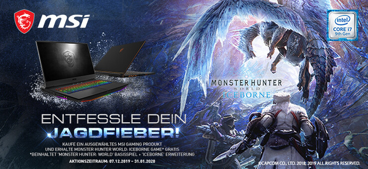 Wer zum Jahreswechsel die Anschaffung eines MSI-Gaming-Laptops plant, kann je nach Modell noch ein extra Bonbon erhalten: Beim Kauf eines qualifizierten Gaming-Laptops gibt es direkt von MSI nach der Produktregistrierung einen Game Code für »Monster Hunter World: Iceborne« (Hauptspiel plus nagelneues DLC) kostenlos dazu. Die Aktion läuft bis zum bis 31. Januar 2020 oder solange der Vorrat reicht. Alle Infos und Teilnahmebedingungen unter: https://msi.gm/de-monsterhunter.