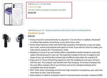Zudem sind auch Bundles mit den erwähnten Nothing Ear (1) Kopfhörern geplant, die bei Amazon aktuell regulär um etwa 96 Euro verkauft werden. Beispielsweise dürfte es ein Bundle mit der 8/256 GB-Version des Nothing-Handys um 597 Euro geben, wobei natürlich nicht auszuschließen ist, dass sich die Preise bis zur breiten Verfügbarkeit am 26. Oktober 2022 noch ändern werden. Die offenbar sehr späte Verfügbarkeit des Nothing Phone (1) könnte für das junge Startup natürlich ein Problem darstellen - wer vielleicht früher an das gehypte Smartphone mit Snapdragon 778+ gelangen will, muss wohl an einen der begehrten Einladungscodes gelangen.