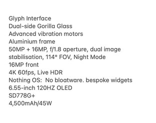 Auf Android 12 Basis bewirbt Nothing auch seine "Nothing OS" Oberfläche, die offenbar ganz ohne Bloatware auskommt aber "Bespoke Widgets" unterstützen soll, hier dürfte das Startup potentiell etwa Apple mit seinen iOS16-Widgets nacheifern. Ebenfalls erwähnt wird natürlich das Glyph-Interface, das Alleinstellungsmerkmal des Nothing Phone (1), das ja bereits in einem Hands-On-Video in Action zu sehen war.