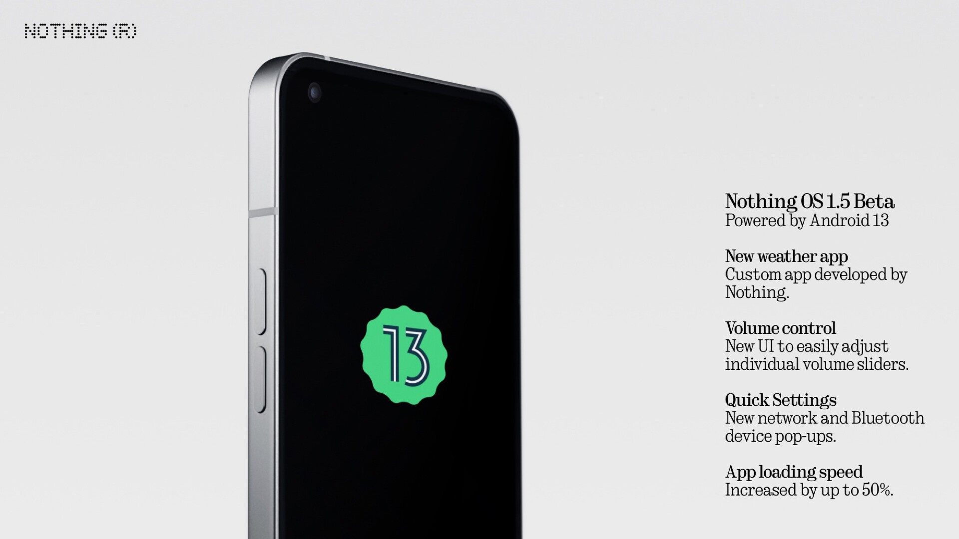 Hello Nothing OS 1.5! Powered by Android 13. Today we launched our Open Beta program, which we'll be gradually rolling out to Phone (1) users ahead of final release.