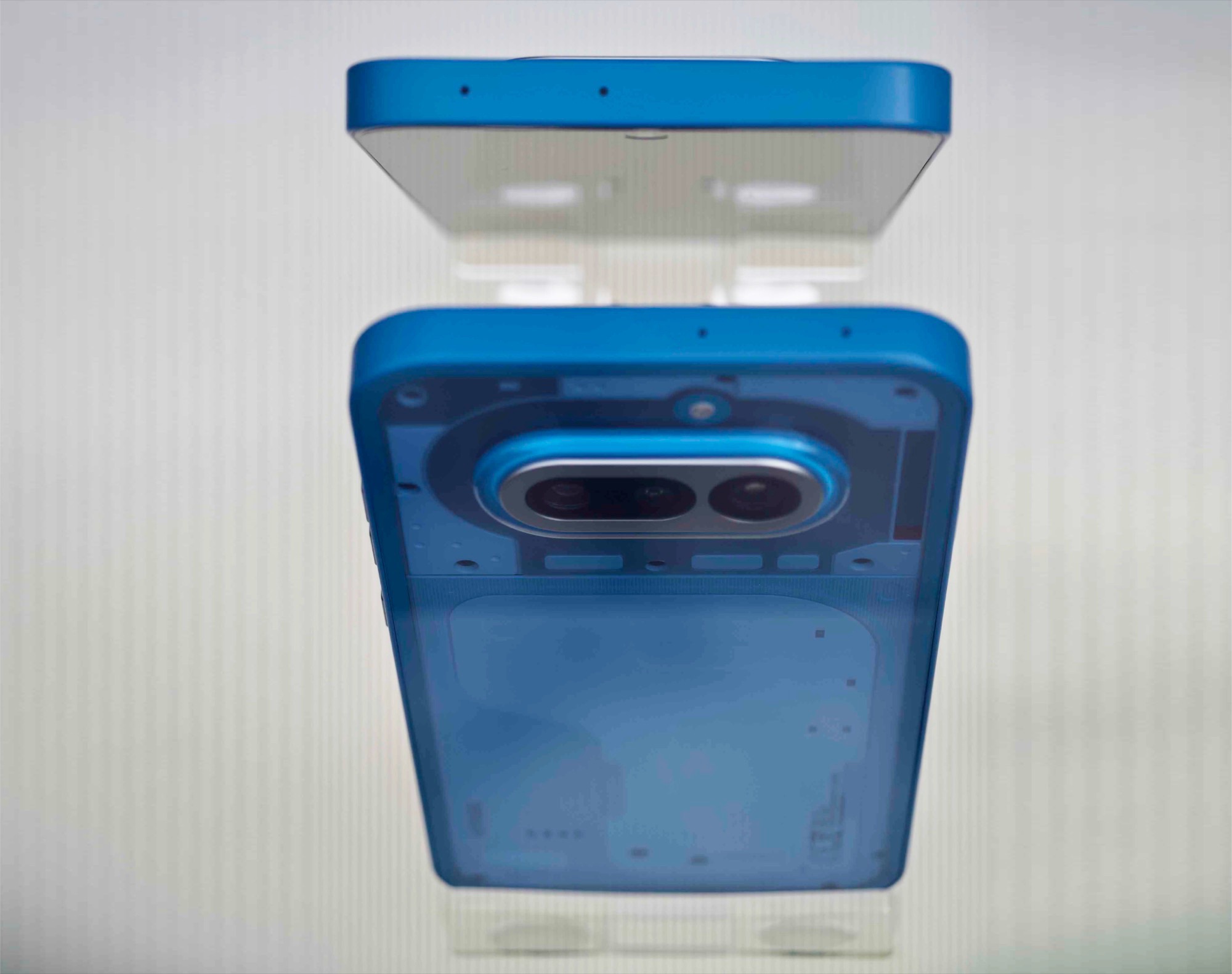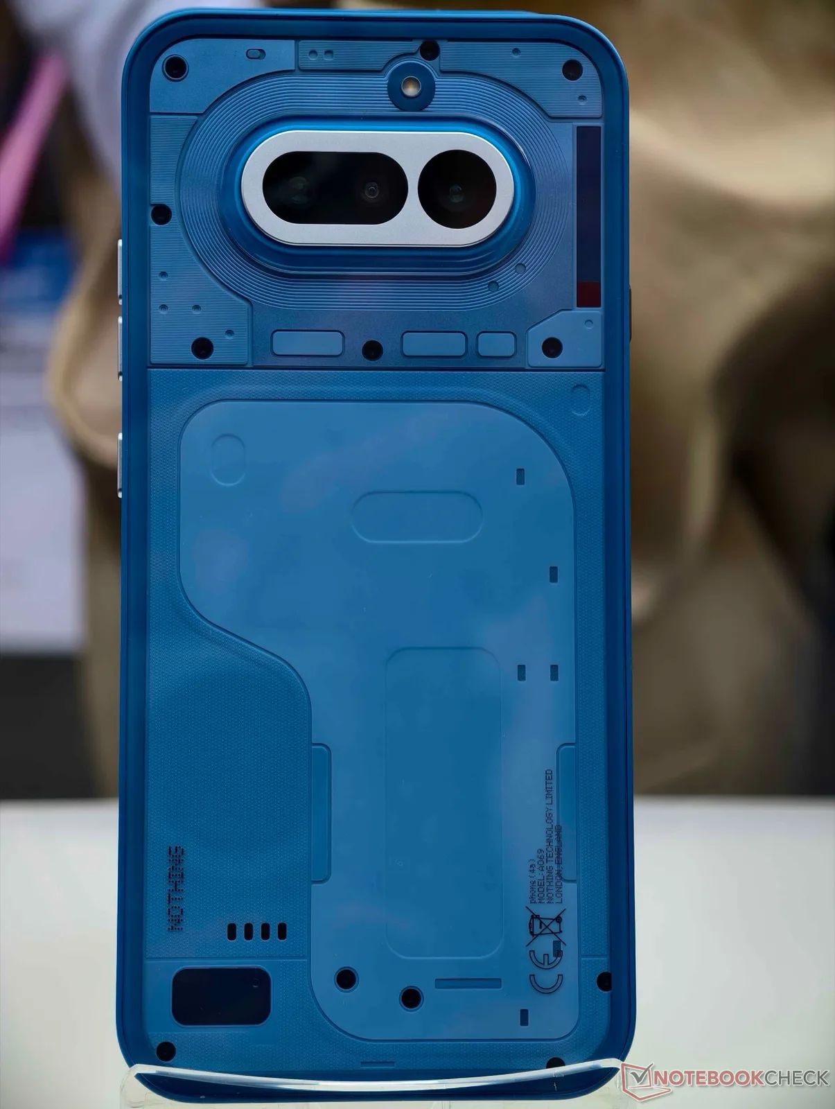 Das Smartphone wird nur hinter Glas ausgestellt, Nothing erlaubt der Presse noch nicht, das Gerät anzufassen oder auszuprobieren, und auch das Glyph Interface auf der Rückseite ist auf den Ausstellern noch deaktiviert. Allerdings ist das Nothing Phone (4a) auf dem Messestand bereits in zwei Farben zu sehen, die Nothing bisher nicht gezeigt hat – Blau und Schwarz. Während die Version in Pink auf einen eher zurückhaltenden Farbton setzt, greift Nothing bem blauen Phone (4a) deutlich tiefer in den Farbtopf.