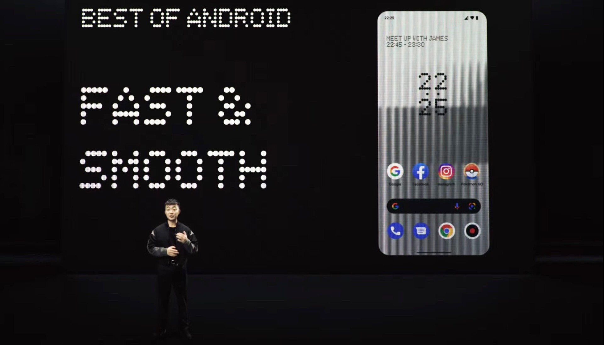 Das Nothing Phone (1) wird mit Nothing OS ausgeliefert, einem Betriebssystem, das auf Android basiert. Das System soll sich vor allem durch ein schlichtes Design von der Konkurrenz abheben, von den Fonts über die Widgets bis hin zu den Animationen wurde der Look von Android grundlegend überarbeitet. Das System soll frei von Bloatware sein und dadurch besonders schnell und effizient arbeiten.