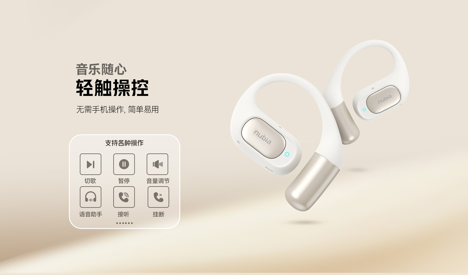 Im Gegenzug ist aber auch keine aktive Unterdrückung von störenden Umgebungsgeräuschen möglich, bei Gesprächen soll der Gesprächspartner aber etwa von Verkehrslärm verschont bleiben. Beworben wird eine Gesamt-Akkulaufzeit von bis 40 Tagen, eine IPX4-Zertifizierung ist vorhanden. Die Kopfhörer bringen jeweils 7,6 Gramm auf die Waage und werden quasi um die Ohrmuschel gelegt, genutzt wird eine flexible, aber dennoch feste Metallverbindung.
