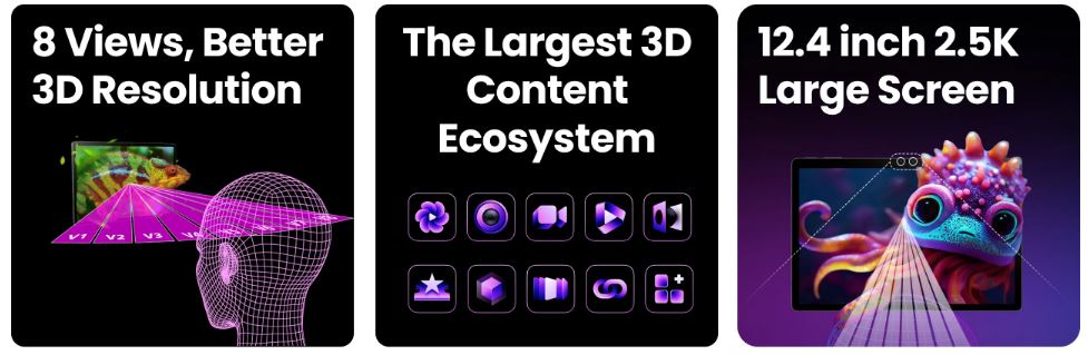 Das Tablet besitzt eine Bildschirmdiagonale von 12,4 Zoll, die 2D-Auflösung liegt bei 2.560 x 1.600 Pixeln. 2D-Inhalte soll das Nubia Pad 3D unter Nutzung von KI-Algorithmen automatisch in 3D-Inhalte umrechnen können. Das Nubia Pad 3D ist mit einem Qualcomm Snapdragon 888 ausgestattet, aktuell vorbestellbar ist lediglich eine Modellversion mit einem 8 Gigabyte großen Arbeitsspeicher und einem 128 Gigabyte großen, internen Speicher. Gleich vier Lautsprecher sollen einen guten Sound bieten, der 9.070 mAh starke Akku eine lange Akkulaufzeit.