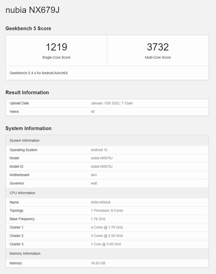 Dass im RedMagic 7 der neue Snapdragon 8 Gen 1 steckt dürfte kaum überraschen, eher schon, dass laut Geekbench-Eintrag (siehe auch Screenshot unten) mehr als 16 GB RAM verbaut sind. Möglicherweise ist da allerdings eine Software-RAM-Erweiterung im Spiel. Android 12 ist vorinstalliert.