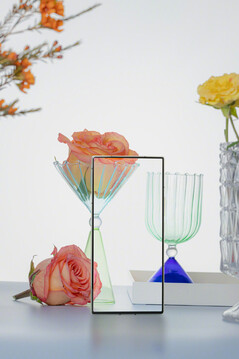 Am spannendsten ist die Rückseite, denn diese beherbergt eine geradezu gigantische Periskop-Tele-Kamera, deren Objektiv eine Kleinbild-äquivalente Brennweite von 85 mm erreicht – eine klassische Porträt-Brennweite. Die Aufschrift deutet auf eine Blendenöffnung von f/3.3, die schiere Größe des Objektivs lässt auf einen vergleichsweise großen Sensor schließen. In der oberen Hälfte des Kameramoduls sitzt die Hauptkamera, die auf ein 35 mm Objektiv setzt, statt wie die meisten Konkurrenten auf eine Brennweite rund um 24 mm.