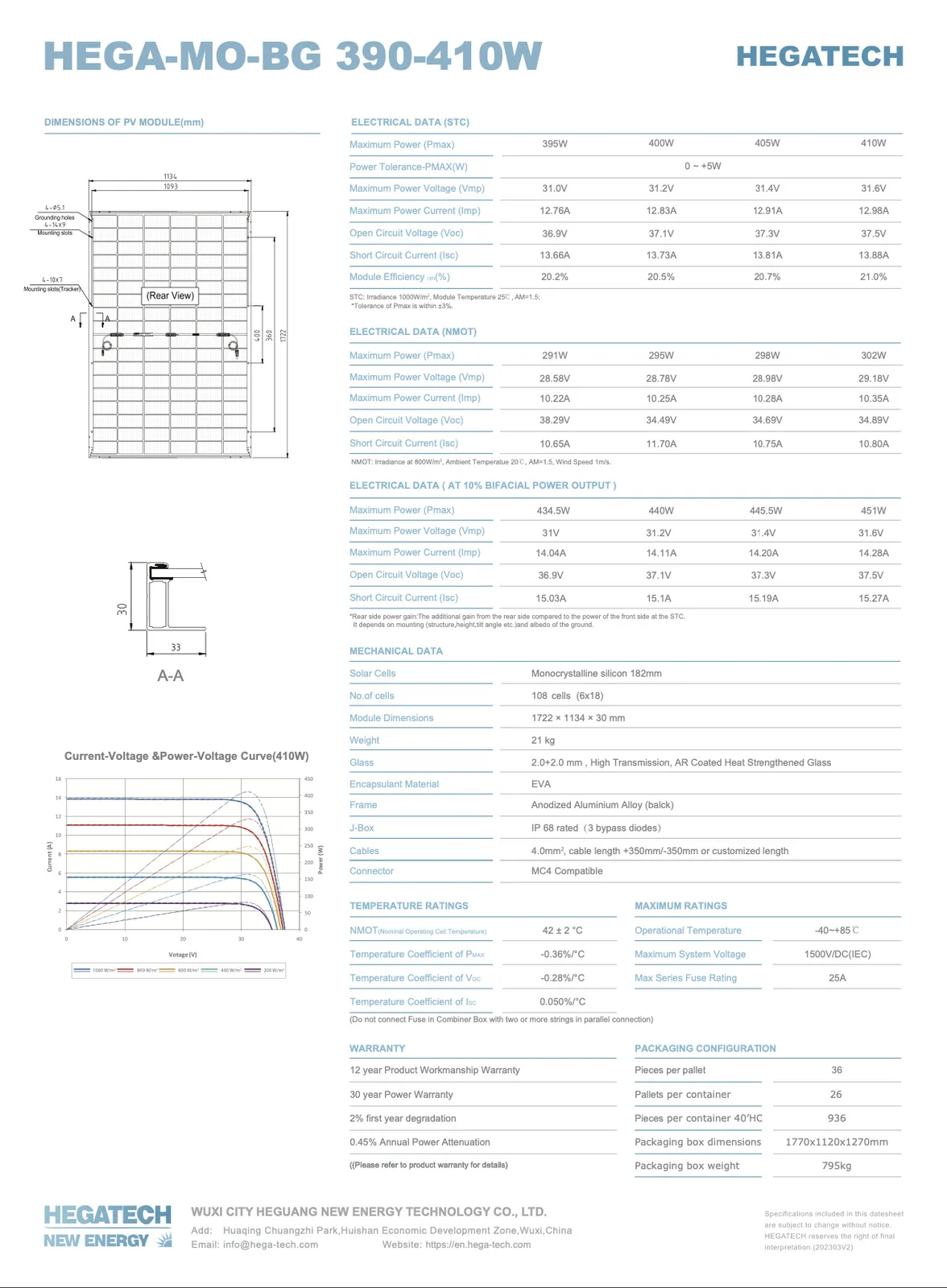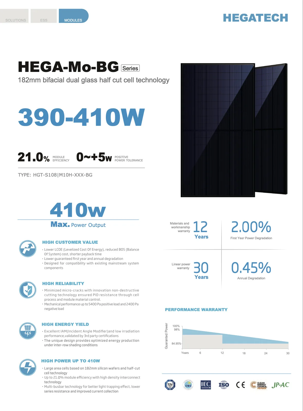 Bei dem aktuellen Angebot erhalten Selbstabholer eine Solaranlage mit 10 kWp zum Preis von nur 1.199 Euro. Das System umfasst 25 bifaziale Glas-Glas-Module Hegatech HGT-S108|M10H-405-BG in Full Black. Es handelt sich hierbei also um relativ veraltete Module mit 405 Wp; neuere erreichen eher 450 Wp oder mehr. Mit Abmessungen von 1.722 x 1.134 x 30 mm ist das System zudem recht kompakt.