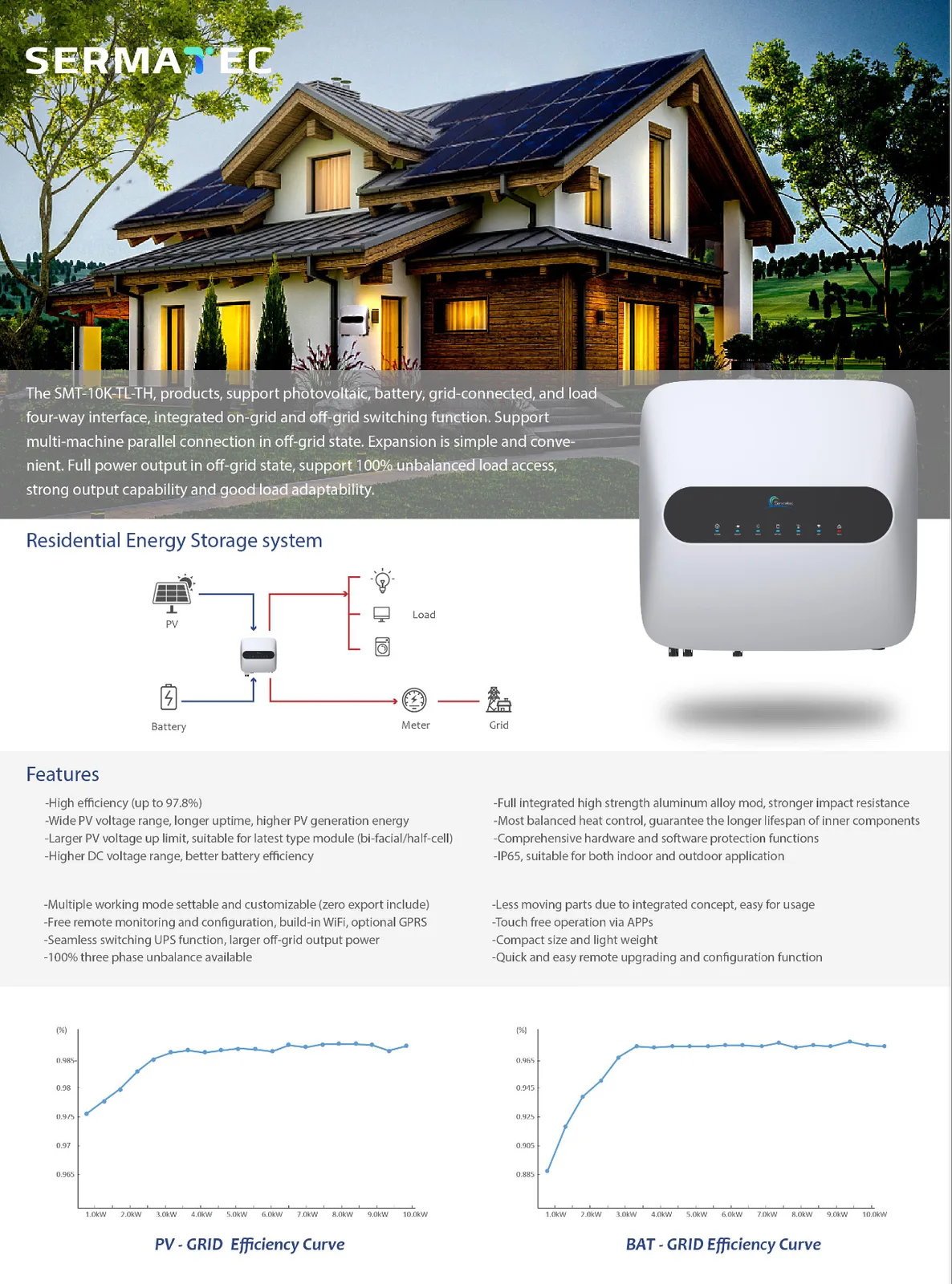 Der dreiphasige Hybrid-Wechselrichter ist ein weniger bekannter Sermatec SMT-10K-TL-TH und mit zwei MPPT ausgestattet. Er kann auch im Off-Grid-Betrieb genutzt werden. Eine Unterkonstruktion ist nicht vorhanden und würde nochmals rund 1.500 bis 2.000 Euro kosten. Wer zudem Wert auf eine höhere Autarkie legt oder seinen zuvor erzeugten Strom auch bei bewölktem Himmel nutzen möchte, kann optional einen Nachrüstspeicher Marstek Plug-In Venus E 3.0 mit 5.120 Wh für 2.198 Euro (zzgl. Versandkosten in Höhe von 250 Euro) erwerben.