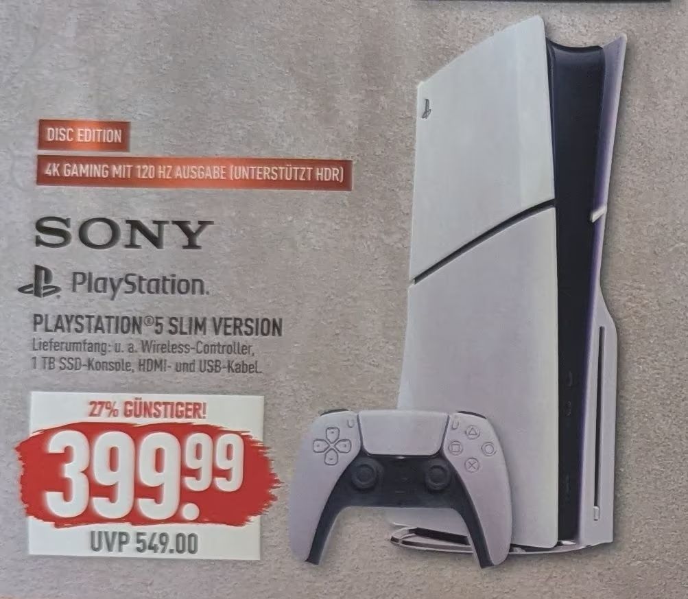 Aktuell bekommt man die Sony Playstation 5 Slim Disc Edition für nur 399,99 Euro lokal bei Marktkauf. Das Angebot startet in wenigen Stunden um 6:00 Uhr, gilt jedoch nur für wenige Tage, bis einschließlich dem 1. Februar. Das entsprechende Prospekt listet die PS5 Slim explizit für den Marktkauf Dülmen, bei kürzlichen, anderen, lokalen Marktkauf-Deals waren die Produkte jedoch auch in anderen Filialen erhältlich, was es zu überprüfen gilt.