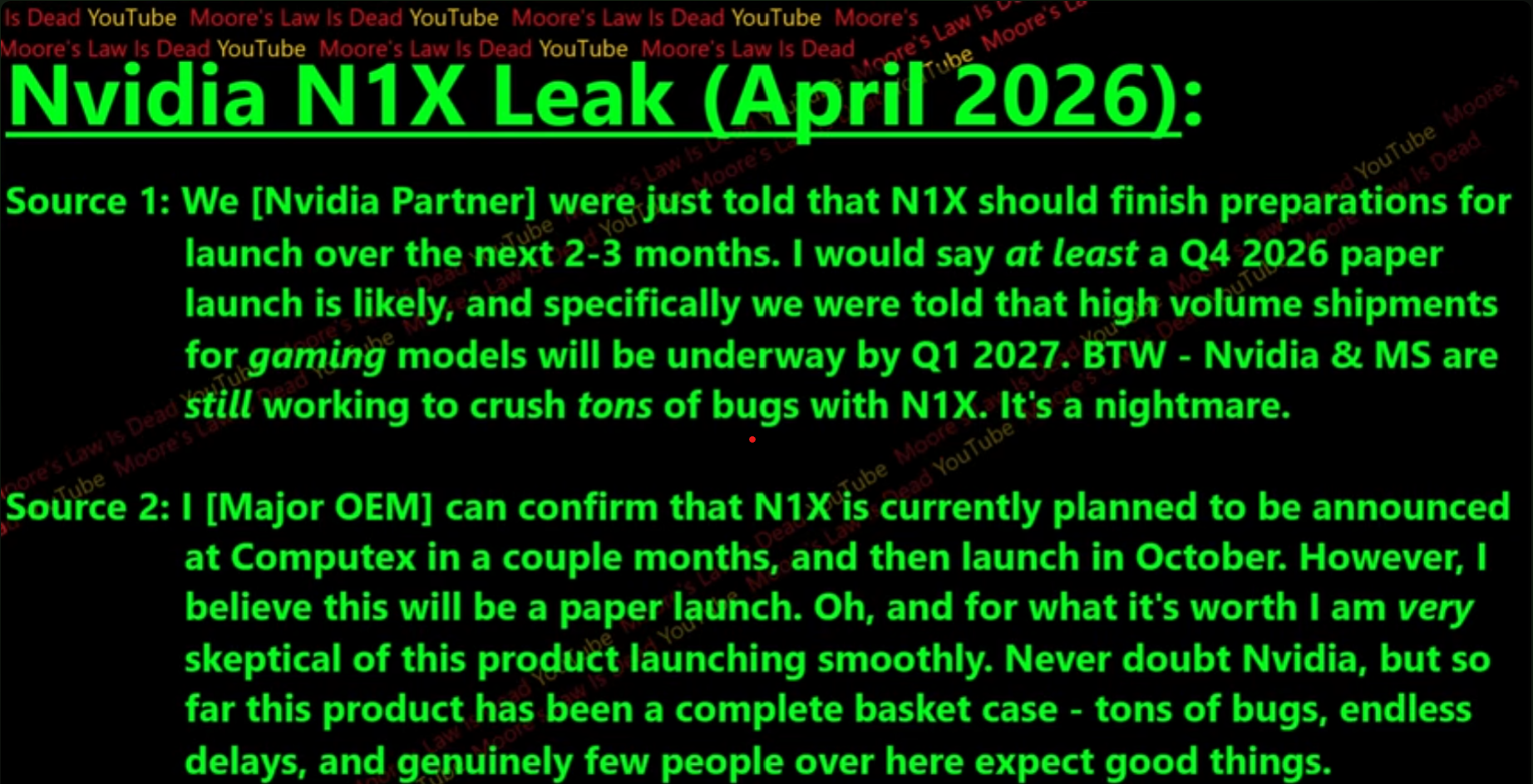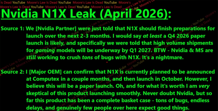 Nvidia N1X Leak deutet auf begrenzte Verfügbarkeit 2026 hin