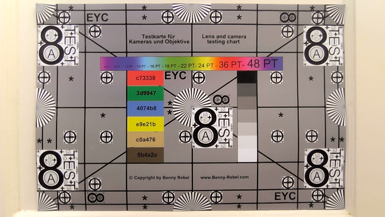 | Colorchecker dE 2000 calibrated * | 0.59 | 0.88 -49% | 0.51 14% | 1.3 -120% | 1 -69% | 0.8 -36% |