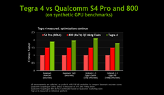 Um die Kunden bis dahin bei Stange zu halten und der Konkurrenz nicht kampflos den Markt zu überlassen, hat Nvidia nun weitere Benchmarkwerte veröffentlicht. Dabei attackieren die Kalifornier vor allem Marktführer Qualcomm und dessen kommende Snapdragon-600- beziehungsweise Snapdragon-800-SoCs (auch S600/S800 genannt).