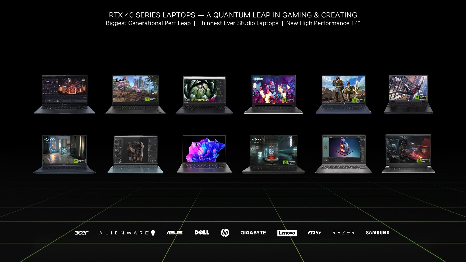 Diese Upgrades sollen vor allem dazu beitragen, den stark expandierenden Markt für 14 Zoll Gaming-Notebooks zu erweitern, indem auch dünne, leichte und portable Geräte mit einer erstklassigen Gaming-Performance aufwarten können. Der unten eingebettete Benchmark-Vergleich fällt aber in die Kategorie Äpfel mit Birnen vergleichen, denn statt die Leistung eines neuen 14-Zöllers mit dem Asus ROG Zephyrus G14, dem Razer Blade 14 oder dem Alienware x14 aus dem Vorjahr zu vergleichen, zieht Nvidia wenig sinnvolle Vergleiche zur iGPU der Intel Core H-Serie.