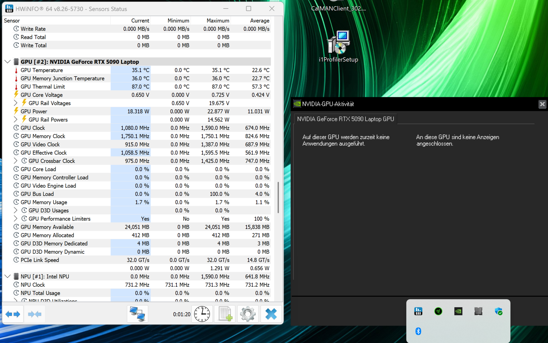 Das ist ein Problem, denn das wirkt sich auf mehrere Bereiche aus, inklusive den Gehäusetemperaturen, dem Stromverbrauch und damit natürlich auch den Akkulaufzeiten. Vor allem, wenn man bei seinem neuen Gaming-Laptop Probleme mit der Akkulaufzeit hat oder bemerkt, dass das Gehäuse sich auch ohne Last bereits spürbar erwärmt, sollte man sich nicht auf die Nvidia-App verlassen, sondern mit Tools wie HWiNFO überprüfen, ob die Nvidia-GPU Strom verbraucht oder nicht.