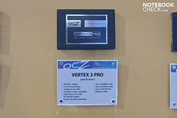 Die Consumer-Variante Vertex 3 stand auf dem Messestand nicht für einen Benchmark bereit aber die Enterprise-Lösung Vertex 3 Pro mit SF-2500-Controller (SF-2582) konnten wir unter die Lupe nehmen. Die Marketing-Angaben versprechen 550 beziehungsweise 525 MByte pro Sekunde im Bereich der sequentiellen Messungen. Im Vergleich fallen die Angaben der Intel Serie 510 (Elmcrest) etwas geringer aus.