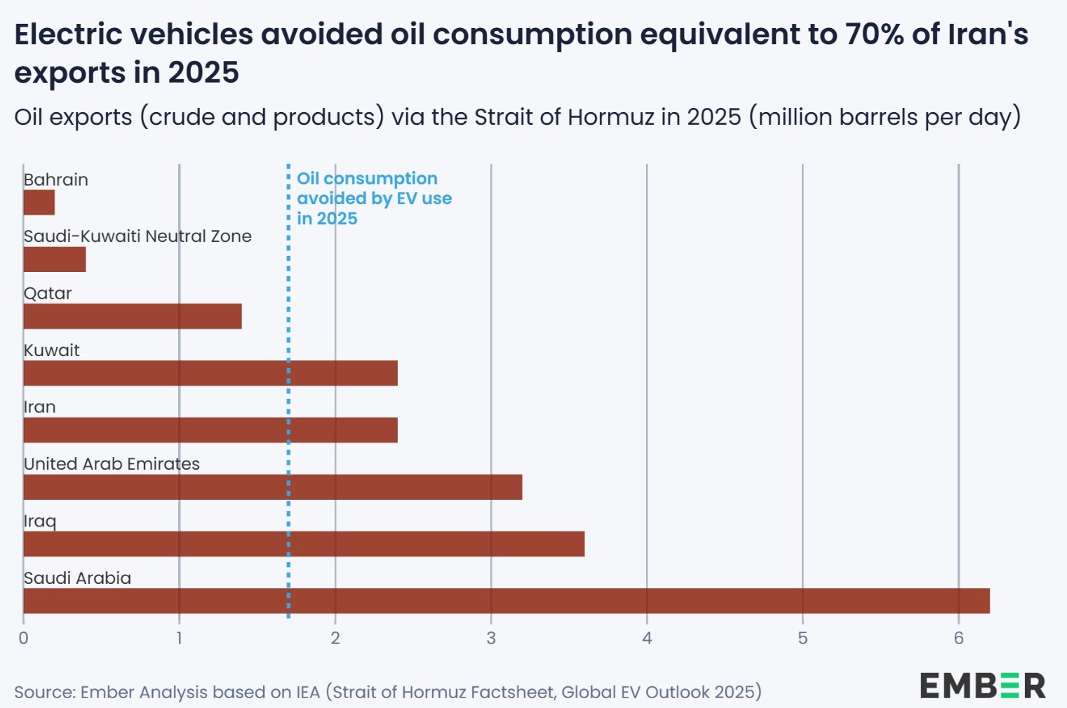 Die Auswertungen gleichen einem beispiellosen Paradigmenwechsel. Allein durch die weltweite Flotte an Elektroautos wurden im Jahr 2025 täglich exakt 1,7 Mio. Barrel Erdöl weniger verbrannt, wie die Forscher von Ember vorrechnen. Zählt man die elektrifizierten Zweiräder hinzu, schraubt sich diese gigantische Einsparung laut BloombergNEF sogar auf 2,3 Mio. Barrel pro Tag nach oben.