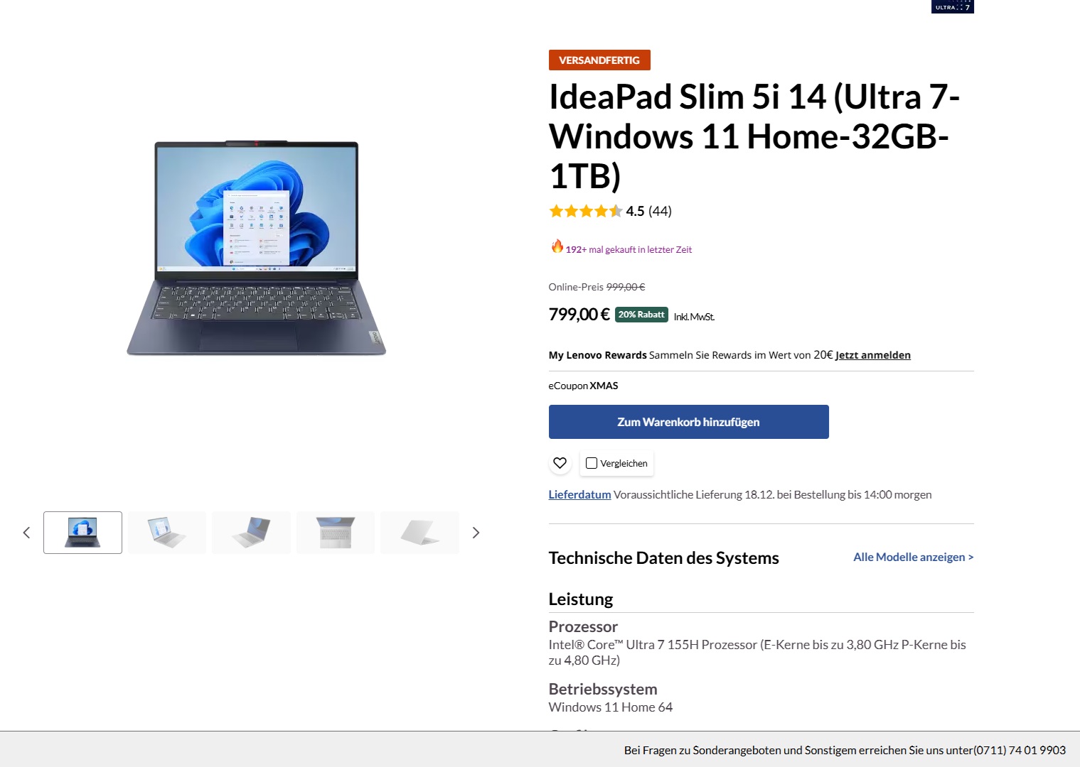 Lenovo hält mit dem IdeaPad Slim 5 14IMH9 83DA00AFGE (Farbe: Abyss blue) ein leistungsstarkes 14-Zoll-Notebook bereit, das sich einer großzügigen Speicherbestückung rühmen darf. Aktuell führt der Lenovo Store das Notebook zu einem Angebotspreis von 799 Euro im Sortiment. Laut Lenovo-DB liegt dem Rechner eine geräuschlose Bluetooth-Maus (Lenovo WL310) bei. Der Laptop ist uns bekannt: Ein Schwestermodell (Farbe: Cloud grey) absolvierte unseren Test mit der Endwertung „Gut (87 %)“.
