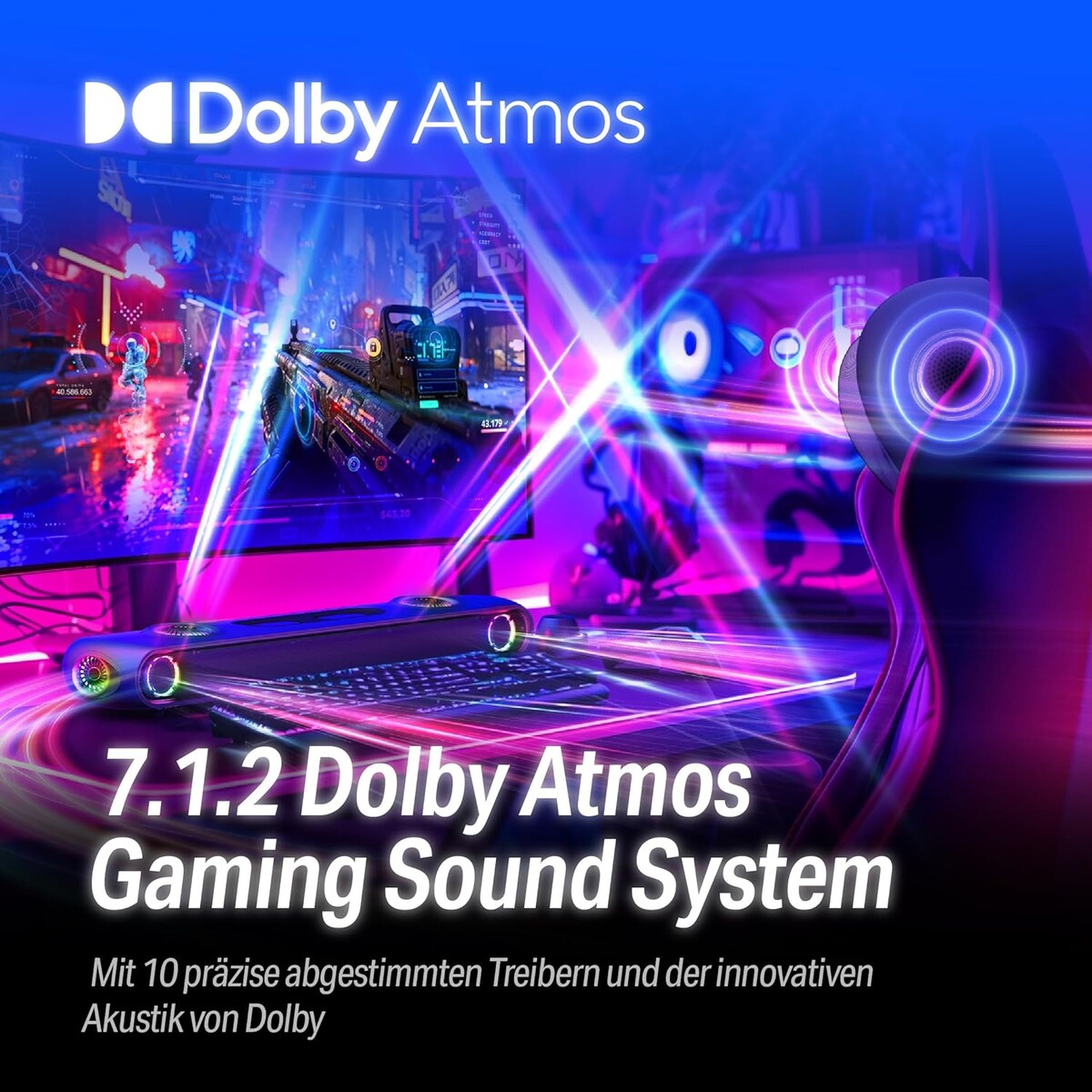 Beworben wird die Soundbar als 5.1.2-System, welches dementsprechend auch Raumklang bieten soll. In der Soundbar sind zwei 0,75-Zoll-Hochtöner verbaut, dazu kommen noch zwei 2,5-Zoll-Vollspektrum-Lautsprecher und vier weitere Treiber, die im Durchmesser 1,5 Zoll messen und ebenfalls den vollen Frequenzbereich darstellen sollen. Die 608 Millimeter lange OXS Thunder Pro wird mit einer Ausgangsleistung von 80 Watt beworben, die Spitzenausgangsleistung wird mit 160 Watt angegeben. Der Nackenlautsprecher ist dann quasi ein Kissen, welche weitere Lautsprecher mitbringt - die Ausgangsleistung der Nackenlautsprecher wird mit 10 Watt angegeben. Vorteilhaft: Eine Kabelverbindung zum Nackenlautsprecher ist nicht erforderlich, so kommt dieser mit einer drahtlosen Datenübertragung und einem Akku.