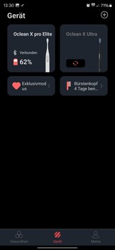 Die Oclean X Pro Elite kann über die Anwendung „Oclean Care+“ eingerichtet werden, welche für iOS und Android verfügbar ist - die Nutzung wird jedoch nur mit einem extra Konto ermöglicht. Im Vergleich zur X Ultra S sind die Einstellungsmöglichkeiten in Oclean Care+ sehr begrenzt und die gesammelten Daten der Zahnputzgewohnheiten etwas rudimentärer aufbereitet. Da Firmware-Updates nur über die Anwendung via eingerichteter Bluetooth-Verbindung aufgespielt werden können, ist eine Kopplung mit dem Pro-Modell aber dennoch empfehlenswert.
