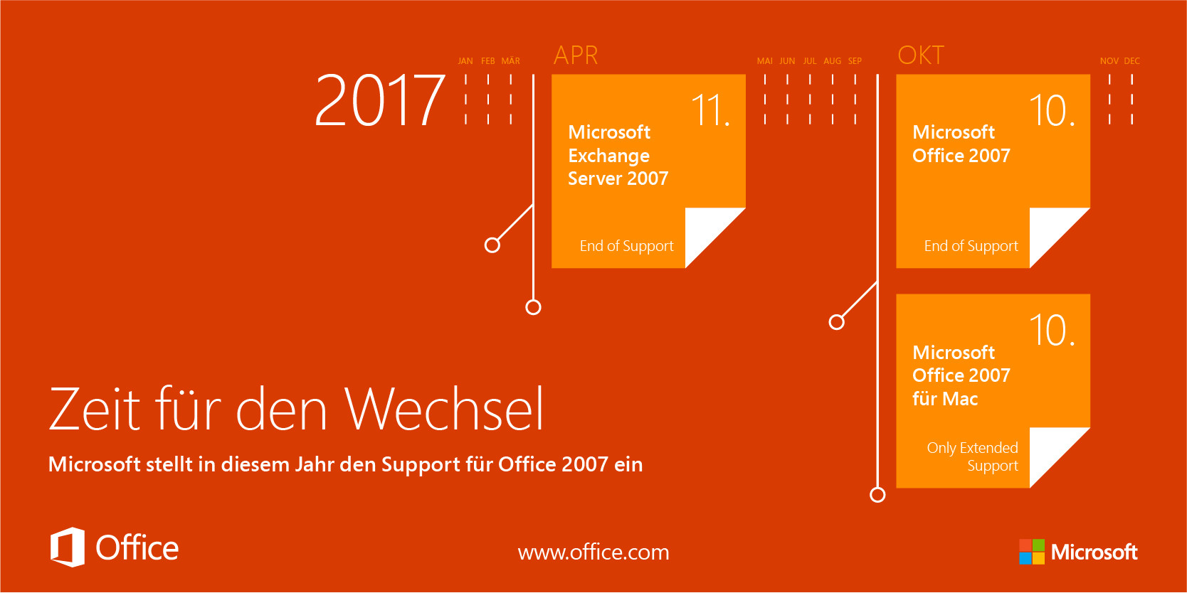 Hier die offiziellen Termine für die Einstellung des Supports laut Microsoft: