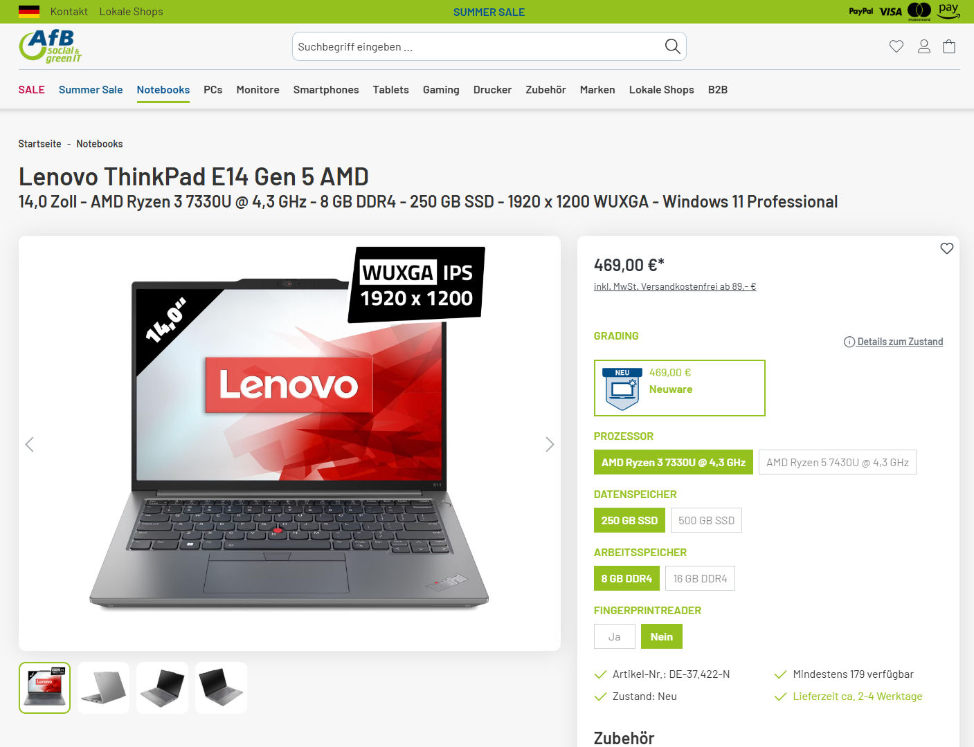Die ThinkPad-E-Reihe gehört zum Basissegment des Business-Notebook-Sortiments der Firma Lenovo. Aktuell führen diverse Händler (AfbShop.de, Easynotebooks.de, Lapstars.de) das Einstiegsmodell der ThinkPad-E14-G5-Reihe zu Preisen zwischen 469 und 489 Euro im Sortiment. Ein leistungsstärkeres Schwestermodell musste sich bereits unserem Test stellen und ergatterte dabei die Wertung „Sehr Gut (88 %)“.