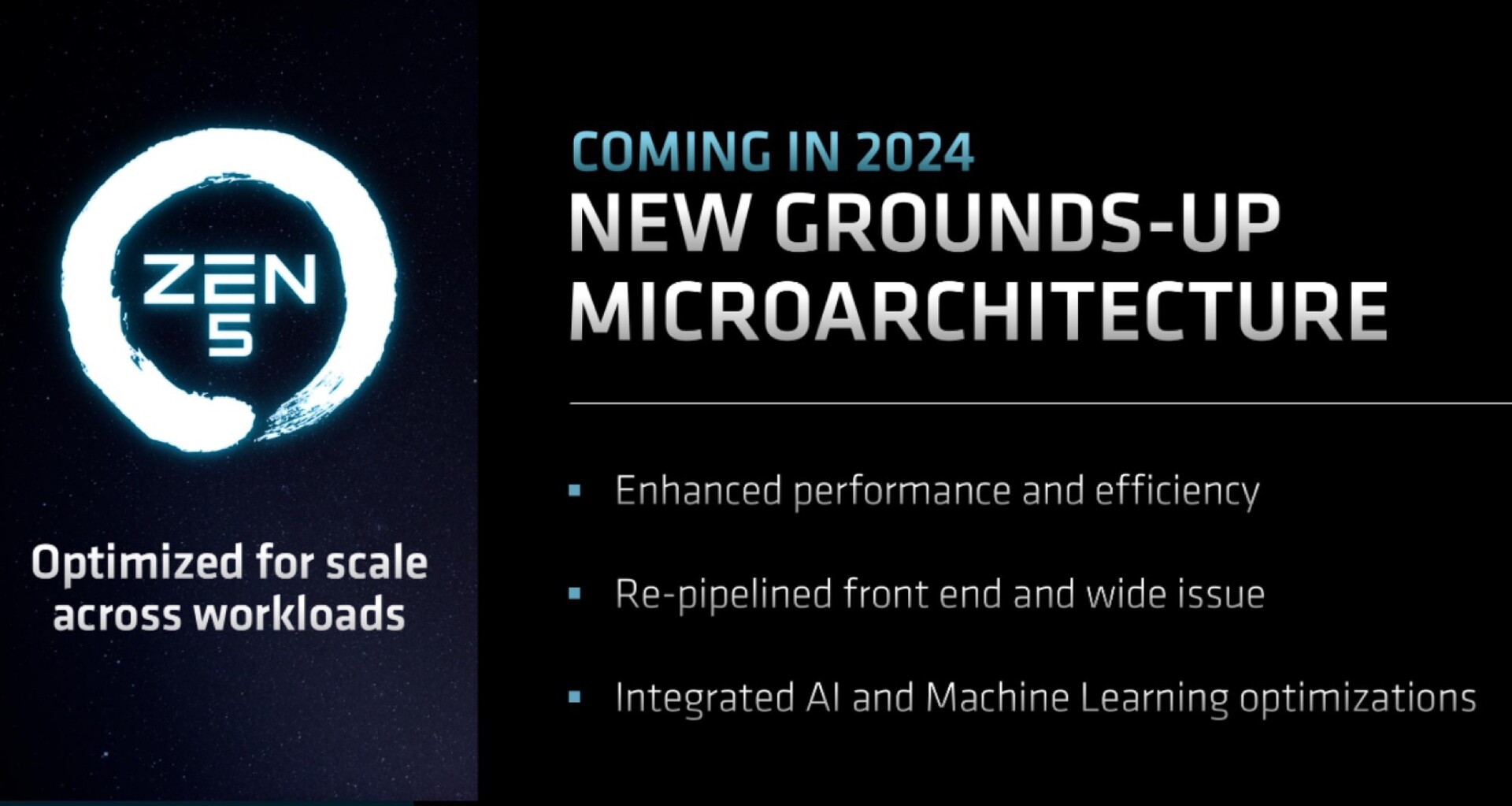 Zen 4-Prozessoren werden bereits in TSMCs N4-Verfahren mit einer Strukturbreite von 4 nm hergestellt. Zen 4 wird laut AMD mindestens 35 Prozent schneller als Zen 3, die Leistung pro Watt steigt um über 25 Prozent, wobei diese Angaben mit einem Desktop-Prozessor mit 16 Kernen ermittelt wurden. Zen 5 "Strix Point" folgt ein Jahr später, nämlich bis 2024, wobei AMD diese Prozessoren direkt mit einer RDNA 3+-iGPU ausstatten möchte.
