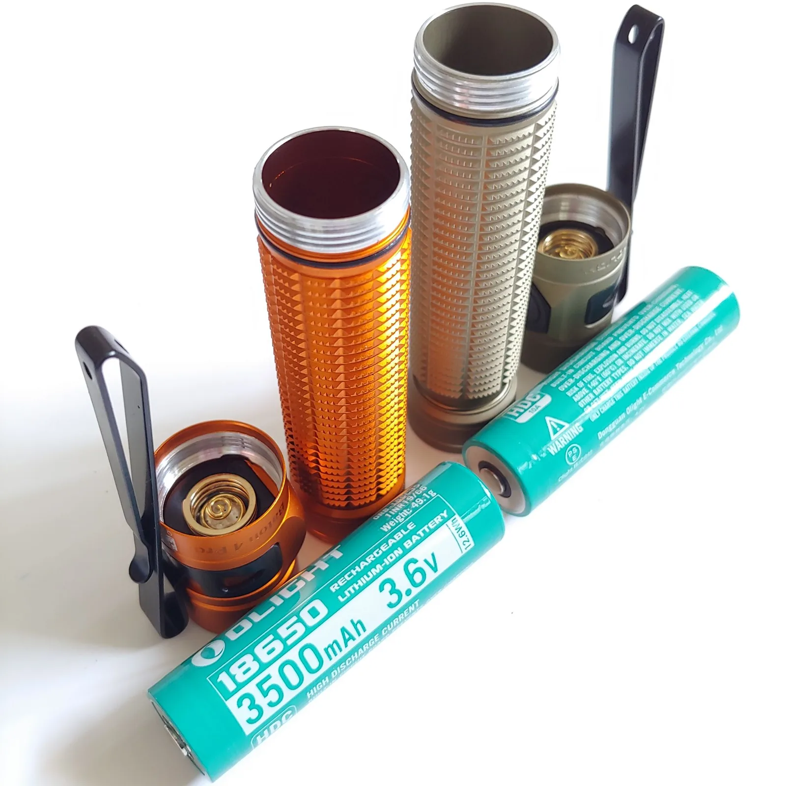Die Olight Batons haben ein gerändeltes Aluminiumgehäuse mit einem Seiten- und einem Endschalter. An der Seite ist ein Metallclip angebracht, mit dem Sie die Batons an Kleidung und Rucksäcken befestigen können.