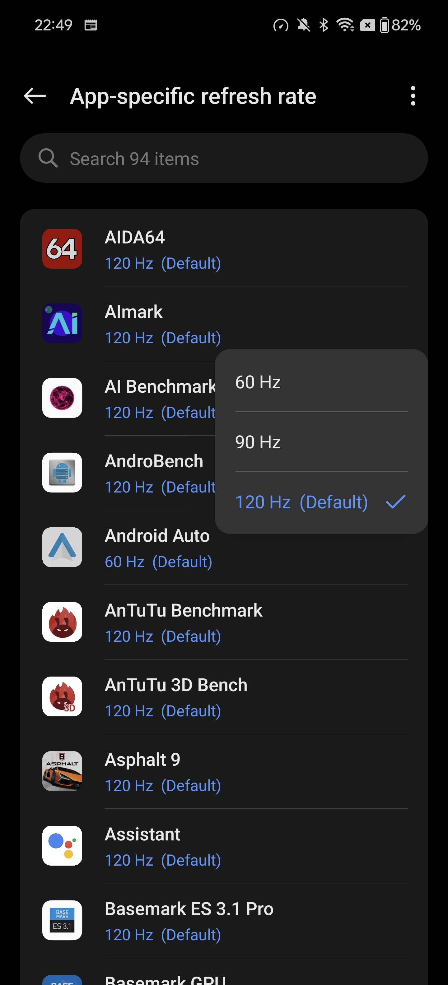 Eine nette Sache ist die Möglichkeit, app-spezifische Aktualisierungsraten von 60 Hz, 90 Hz und 120 Hz einzustellen. Das funktioniert allerdings nicht mit allen Apps - Google Maps zum Beispiel läuft nur mit 60 Hz, auch wenn die Bildwiederholfrequenz auf 120 Hz eingestellt ist.