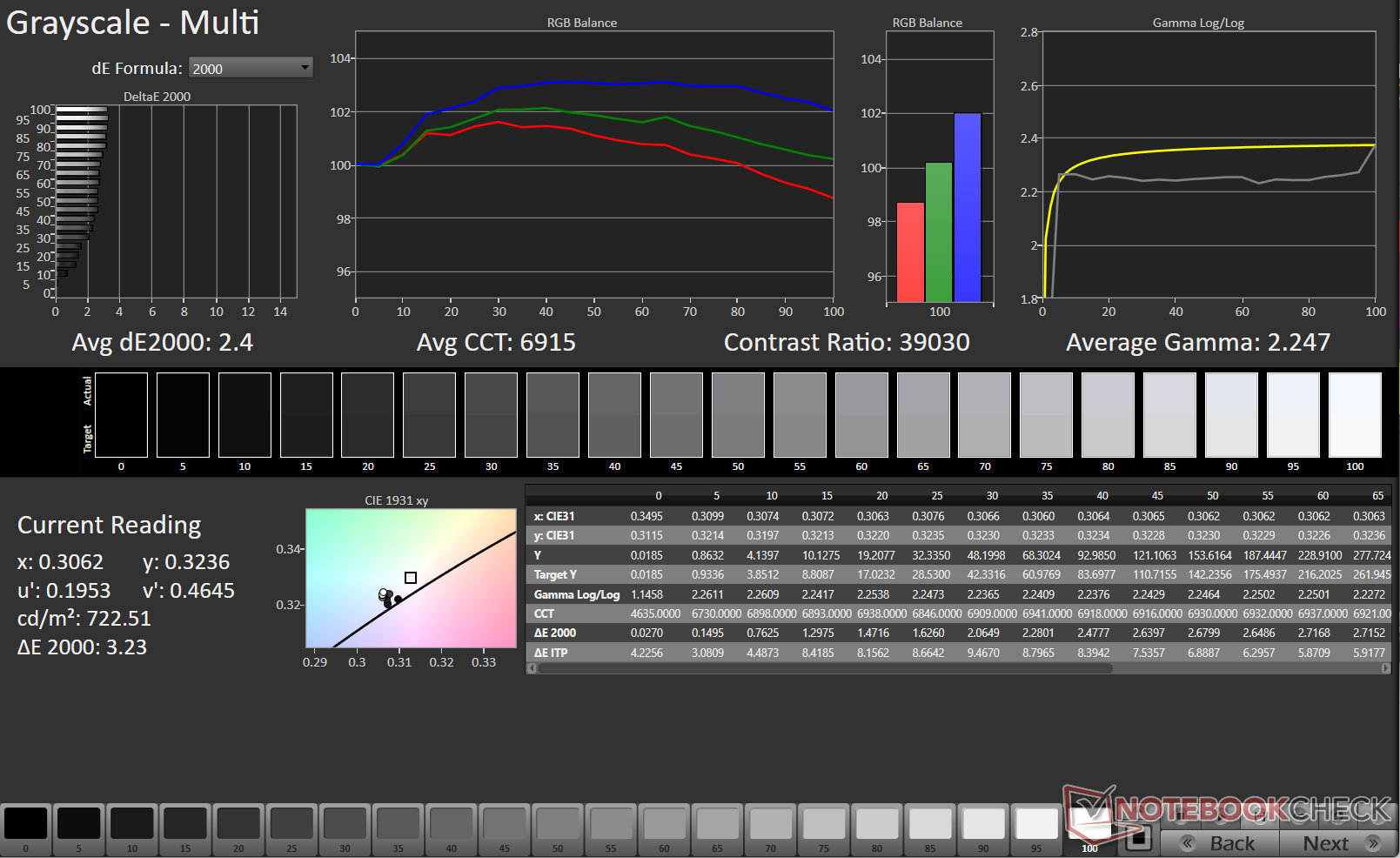 ΔE Greyscale Calman: 2.4 | ∀{0.09-98 Ø5}