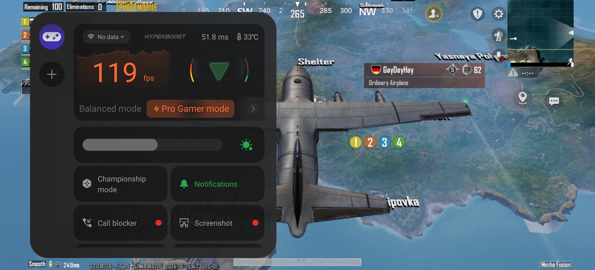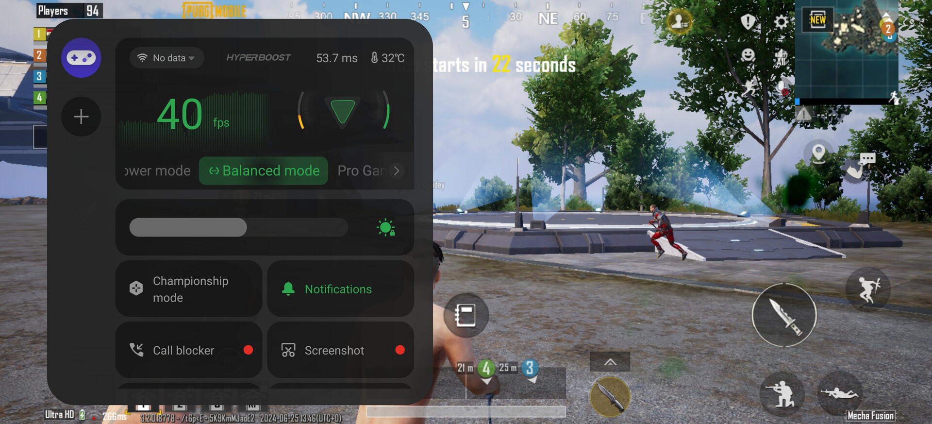 OxygenOS bietet auch ein HyperBoost Game Engine Overlay, das nicht nur die fps, Latenz und SoC-Temperatur anzeigt, sondern Sie auch zwischen den Modi Low Power, Balanced und Performance wählen lässt.