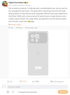 Von einem Redesign des OnePlus 13 war bereits im März mal zu lesen, die Grafik unten zeigt nun aber ein ganz anderes Kamera-Modul als es die Konzeptbilder im Frühjahr nahegelegt hatten. Anzumerken ist allerdings, dass die Zeichnung noch ein designgeschütztes OnePlus 13 in einer Schutzhülle zeigt, es kann also durchaus sein, dass sich das über die gesamte Breite der Rückseite erstreckende Kamera-Modul als Fehlinterpretation entpuppt und es doch wieder beim runden Modul an der linken Ecke der Rückseite bleibt.