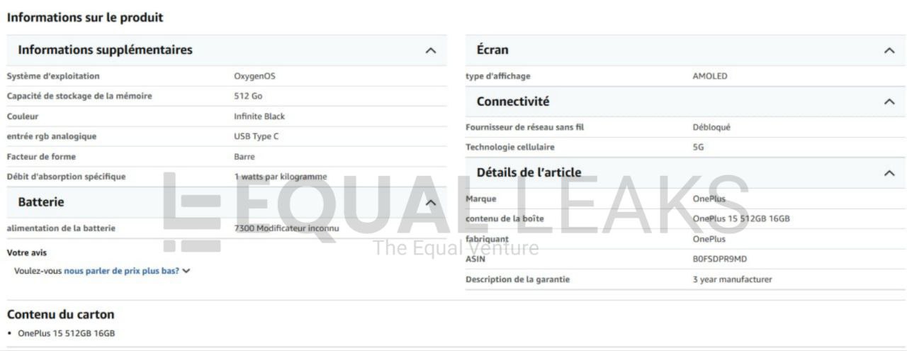 Darüber hinaus deutet eine Produktseite von Amazon Frankreich darauf hin, dass die globale Version des OnePlus 15 die gleiche Akkukapazität von 7.300mAh wie das chinesische Modell bieten wird. Auf der Produktseite von Amazon UK wird unterdessen enthüllt, dass das OnePlus 15 mit 16GB RAM und 512GB Speicher dort 949 Britische Pfund kosten wird, was umgerechnet etwa 1.090 Euro wären. Daneben soll es eine erschwinglichere Modellvariante mit 12GB RAM und 256GB Speicher sowie eine Top-Variante mit bis zu 1TB Speicher geben.