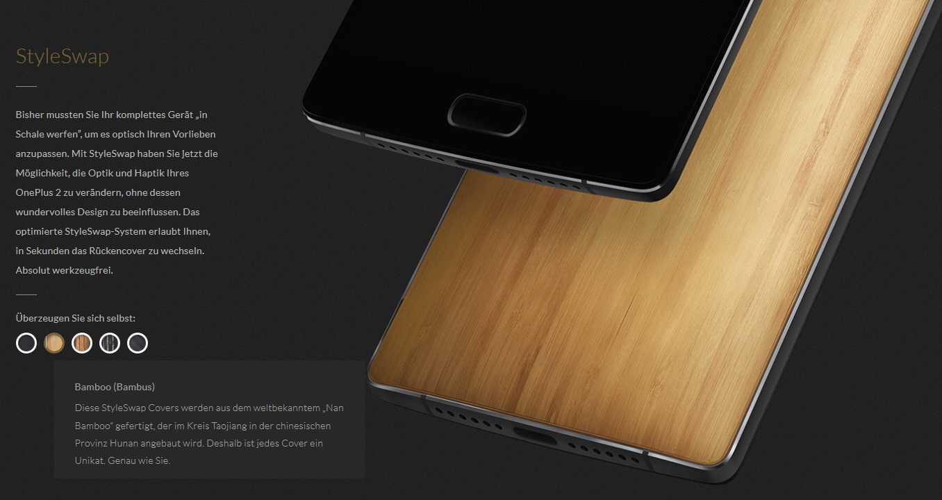 Im Forum hatte OnePlus schon am 17. Juli um eine Abstimmung zu möglichen Varianten der StyleSwap Cover gebeten. Zur Wahl standen hier Bamboo, Ceramic, Denim, Mother-of-pearl, Nylon, Leather, Quartz und schließlich Rosewood, der als klarer Favorit aus dem Voting hervorging.