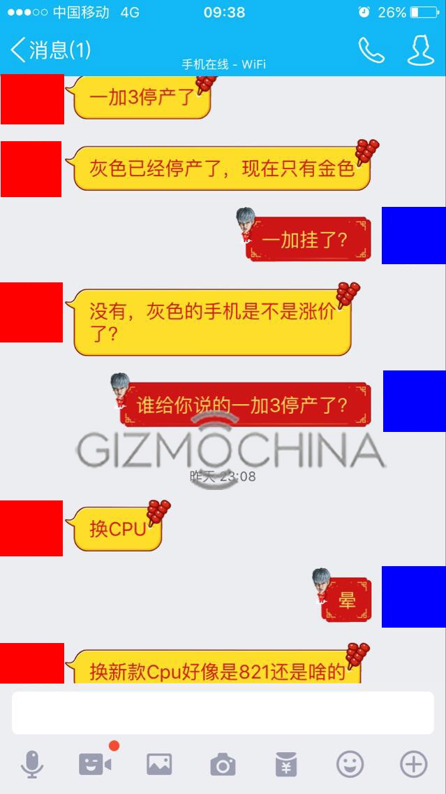 Einem Bericht von Gizmochina zufolge, sollen die anhaltenden Versorgungsprobleme mit AMOLED-Panels und die daraus resultierenden Lieferprobleme beim OnePlus 3 demnächst durch einen Produktionsstopp gelöst werden. Was auf den ersten Blick widersprüchlich klingt, würde es dem Hersteller erlauben, rasch auf ein neues Modell, dann vermutlich mit LCD-Panel, zu wechseln. Das neue Modell soll dann auch, wie bereits berichtet, mit dem leicht upgedateten Snapdragon 821-Prozessor laufen. Dieses Gerücht kommt offenbar aus Quellen der Zulieferindustrie, einen Ausschnitt aus dem Chatverlauf hat Gizmochina als "Beweis" mit veröffentlicht (siehe unten).